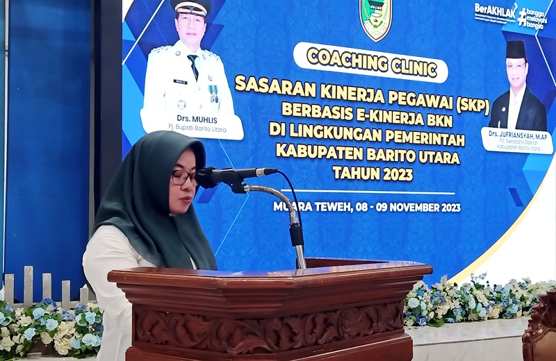 MUARA TEWEH – Badan Kepegawaian, Pengembangan dan Sumber Daya Manusia Kabupaten Barito Utara (BKPSDM Barut) menyelenggarakan kegiatan Coaching Clinic Sasaran Kinerja Pegawai (SKP) berbasis e kinerja BKN tahun 2023, di gedung pertemuan balai Antang Muara Teweh, Rabu (8/11/2023).