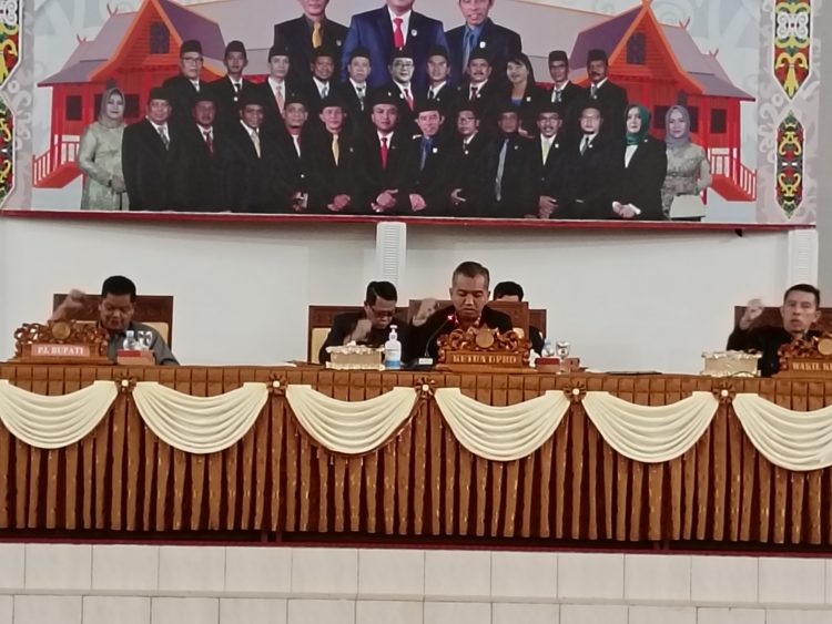 KUALA PEMBUANG – DPRD Kabupaten Seruyan menggelar rapat paripurna dengan agenda penyampaian rekomendasi DPRD Seruyan terhadap Laporan Keterangan Pertanggungjawaban (LKPJ) Pemerintah Daerah Tahun Anggaran 2023, di Aula Paripurna DPRD setempat, Kamis (13/06/2024).