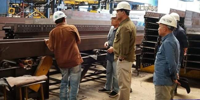Bupati dan rombongan meninjau langsung area produksi untuk melihat proses fabrikasi dan kapasitas pabrik. Tujuan utama kunjungan ini adalah memastikan kemampuan pabrik dalam memproduksi material baja sesuai spesifikasi teknis dan standar mutu tinggi, khususnya untuk pembangunan jembatan.