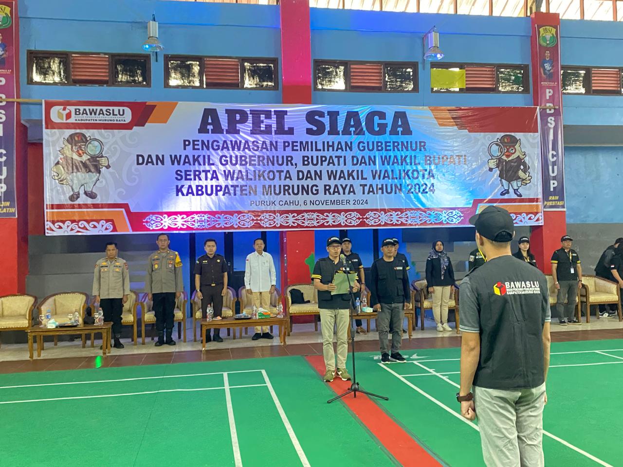 Sinarkalteng.com, PURUK CAHU – Dalam rangka pengawasan tahapan Pemilihan Gubernur dan Wakil Gubernur, serta Bupati dan Wakil Bupati 2024, Badan Pengawas Pemilu (Bawaslu) Kabupaten Murung Raya (Mura) menggelar Apel Siaga yang diikuti oleh Panwaslu Kecamatan, Panwaslu Kelurahan/Desa (PKD), dan Pengawas Tempat Pemungutan Suara (PTPS) se-Kabupaten Murung Raya. Kegiatan ini berlangsung di Gor Bulu Tangkis, Jl. Temanggung Silam, Puruk Cahu, pada Rabu (6/11/2024).