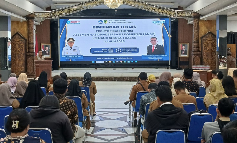 SinarKalteng.com, MUARA TEWEH – Dinas Pendidikan Kabupaten Barito Utara menggelar kegiatan Bimbingan Teknis (Bimtek) Proktor dan Teknisi Asesmen Nasional Berbasis Komputer (ANBK) jenjang Sekolah Dasar tahun 2025, yang dilaksanakan di Gedung Balai Antang Muara Teweh, Selasa (9/9/2025).