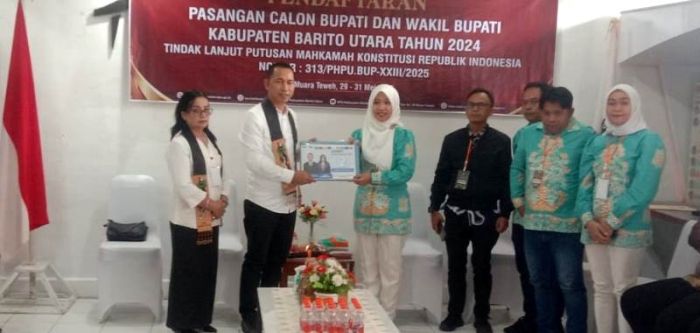 Sinarkalteng.com, MUARA TEWEH – Pasangan bakal calon Bupati dan Wakil Bupati Barito Utara, H. Jimmy Carter dan Ir. Inriaty Karawaheni, M.AP. resmi mendaftarkan diri ke Komisi Pemilihan Umum (KPU) Kabupaten Barito Utara untuk mengikuti Pemungutan Suara Ulang (PSU) Pilkada 2024, jumat pagi (30/5/2025) pukul 09.00 WIB.