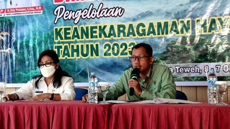 MUARA TEWEH – Dinas Lingkungan Hidup (DLH) Provinsi Kalimantan Tengah (Kalteng) bekerjasama dengan Dinas Lingkungan Hidup Kabupaten Barito Utara (DLH Barut) melaksanakan bimbingan teknis (Bimtek) dalam pengelolaan keanekaragaman hayati, di aula salah satu Hotel dalam kota Muara Teweh, Rabu (4/10/2023).