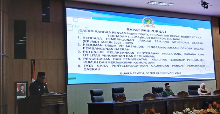 Sinarkalteng.com, MUARA TEWEH – DPRD Kabupaten Barito Utara mulai memproses pembahasan lima Rancangan Peraturan Daerah (Raperda) melalui Rapat Paripurna I yang digelar di ruang rapat DPRD Barito Utara, Senin (23/2/2026).