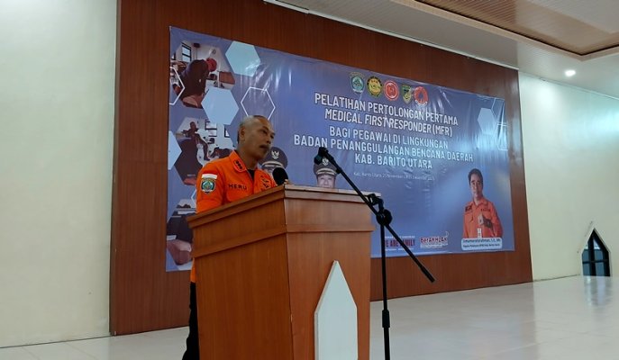 Sinarkalteng.com, MUARA TEWEH – Heru Suartanto, SH, MM, Kepala Balai Pelatihan Sumber Daya Manusia Pencarian dan Pertolongan Badan Nasional Pencarian dan Pertolongan (Basarnas), telah menyampaikan harapan agar Pelatihan Medical First Responder (MFR) bagi pegawai BPBD Kabupaten Barito Utara dapat memberikan manfaat maksimal saat menyampaikan sambutan pembukaan acara di aula Dinas Lingkungan Hidup, Selasa (25/11/2025).