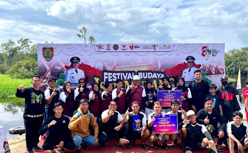 MUARA TEWEH – Kontingen Kabupaten Barito Utara (Barut) pada Festival Budaya Isen Mulang (FBIM) tahun 2024 di Palangka Raya, pada Rabu tanggal 22 Mei 2024, sudah mengumpulkan sebanyak 9 medali emas, dua medali perak dan tiga medali perunggu. Kepala Dinas Budparpora Barito Utara Hj Annisa Cahyawati mengatakan pada hari Rabu tanggal 22 Mei 2024, kontingen Barito Utara sudah mengumpulkan medali 9 emas, dua perak dan tiga perunggu. “Ke sembilan medali emas itu diraih dari cabang lomba Lagu Daerah Putra dan Lagu Daerah Putri, Sepak Sawut, Besei Kambe Putri, Jukung/Dayung Putri, Jukung/Dayung Putra, Mangaruhi Putra, Manyipet Putri, dan Balogo Putri, ke semua cabang lomba tersebut meraih juara I,” kata Hj Annisa Cahyawati, Rabu (22/05/2024) petang. Dikatakan Kadis Budparpora Barito Utara, iIni adalah prestasi kita semua dan atas dukungan dan support pimpinan dan seluruh masyarakat Kabupaten Barito Utara. “Alhamdulillaah wasyukrulillaah, perolehan medali emas, perak dan perunggu terus bertambah pada kegiatan Isen Mulang kontingen Barito Utara,” kata Kadis Budparpoara Barito Utara Hj Annisa Cahyawati, melalui pesan WhatsApp (WA). Adapun hasil medali yang diaraih oleh kontingen barito Utara yaitu Juara 1 Lagu Daerah Putra, Juara 1 Lagu Daerah Putri, Juara 1 Sepak Sawut, Juara 1 Besei Kambe Putri, Juara 1 Jukung/Dayung Putri, Juara 1 Jukung/Dayung Putra, Juara 1 Mangaruhi Putra, Juara 1 Manyipet Putri, Juara 1 Balogo Putri, Juara 2 Habayang Putri, Juara 2 Besei Kambe Putra, Juara 3 Mangenta, Juara 3 Manetek maneweng Kayu, Juara 3 Manyipet Putra, Juara 4 Sukup Simpan, Juara 4 Malamang, Juara 5 Tari Pesisir, Juara 5 Mangaruhi Putri. Berdasarkan hasil rekap sementara perolehan juara per tanggal 22 Mei 2024, pukul 16.30 WIB : Kabupaten Barito Utara 9 Emas, 2 Perak dan 3 Perunggu