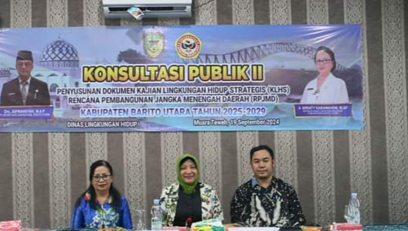 Sinarkalteng.com, MUARA TEWEH – Pemerintah Kabupaten Barito Utara (Barut), melalui Dinas Lingkungan Hidup Kabupaten Barito Utara gelar kosultasi Publik ke II (dua) penyusunan dokumen kajuan Lingkungan Hidup Strategis Rencana Pembangunan Jangka Menengah Daerah (RPJMD) Kabupaten Barito Utara tahun 2025-2029 yang dilaksanakan di aula Hotel Senyiur, Muara Teweh.