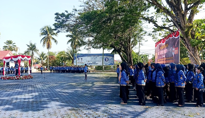 MUARA TEWEH – Pemerintah Kabupataten Barito Utara (Pemkab Barut) setiap tanggal 17 setiap bulan melaksanakan apel gabungan. Dimana apel gabungan tersebut merupakan rutinitas dalam rangka meningkatkan etos kerja dan disiplin sebagai wujud pengabdian dan tanggung jawab ASN dalam melaksanakan tugas sehari-hari serta untuk menjalin komunikasi dan silaturahmi antar PNS di lingkup Pemkab setempat.