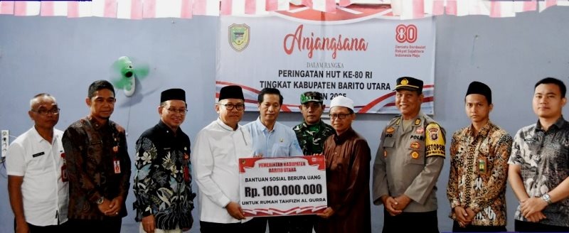 Dalam kunjungan ke Yayasan Panti Asuhan Al Hidayah dan Rumah Tahfizh Al Qurra’, Pemkab Barito Utara menyerahkan bantuan sosial berupa uang tunai sebesar Rp100 juta, serta sembako berupa beras, telur, dan mi instan untuk mendukung kebutuhan sehari-hari para penerima manfaat.
