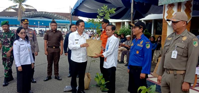 Adapun bibit tanaman yang diserahkan sebanyak 600 bibit yaitu mangga, sawo, klengkeng, cabe, jambu air, jambu cristal, petai, nangka, nangkadak, manggis, dan pinging hutan.(Sah)