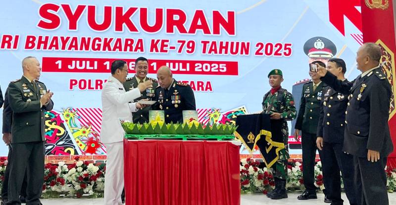 Sinarkalteng.com, MUARA TEWEH – Semangat Hari Bhayangkara ke-79 terasa begitu kental dalam acara syukuran yang digelar di Gedung Balai Antang, Selasa (1/7/2025). Penjabat (Pj) Bupati Barito Utara, Indra Gunawan, turut hadir dalam acara tersebut sebagai wujud dukungan dan apresiasi terhadap Polri.
