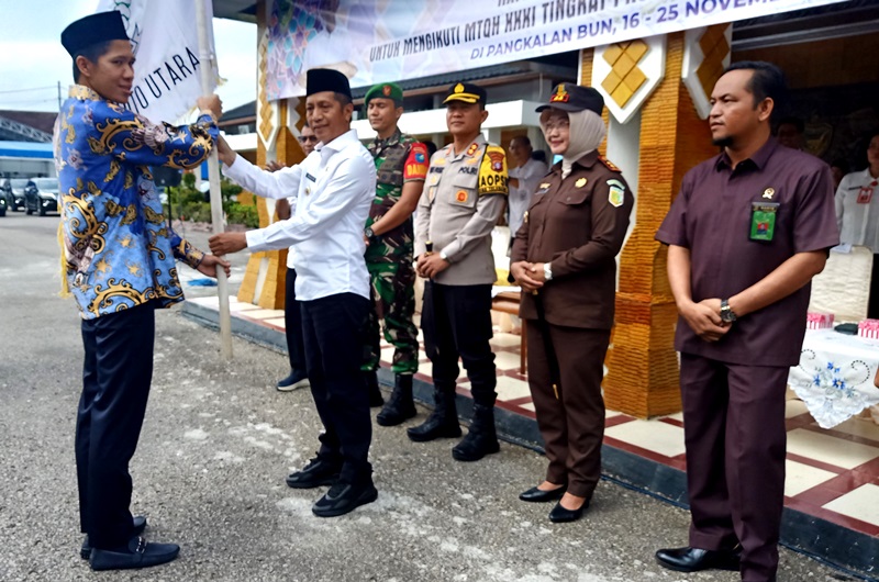 MUARA TEWEH – Penjabat (Pj) Bupati Barito Utara, Drs Muhlis melepas kafilah Barito Utara dalam rangka mengikuti Musabaqah Tilawatil Quran Hadist (MTQH) ke XXXI tingkat Provinsi Kalimantan Tengah di Pangkalan Bun Kota Waringin Barat, dihalaman kantor bupati, Rabu (15/11/2023).