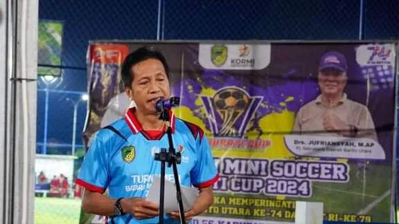 “Sebagai informasi bahwa tournament Minisoccer ini juga merupakan serangkaian kegiatan untuk memeriahkan Hari Jadi ke-74 Kabupaten Barito Utara dan Hari Kemerdekaan Republik Indonesia ke-79, serta tadi sore juga Koni Barito Utara, khususnya Askab PSSI Kabupaten Barito Utara telah berhasil dan sukses menyelenggarakan serangkaian Tournament sepakbola u-40 Pj Bupati Barito Utara Cup tahun 2024,” kata Pj Bupati Muhlis saat membuka kegiatan tersebut.