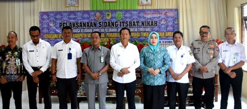 MUARA TEWEH – Penjabat (Pj) Bupati Barito Utara Drs Muhlis menghadiri dan membuka secara resmi kegiatan sidang Itsbat Nikah DPK Korpri kerjasama dengan Pengadilan Agama (PA) Muara Teweh di Kelurahan Jingah dan Kelurahan Jambu Kecamatan Teweh Baru, di aula Kelurahan Jambu, Rabu (20/12/2023).