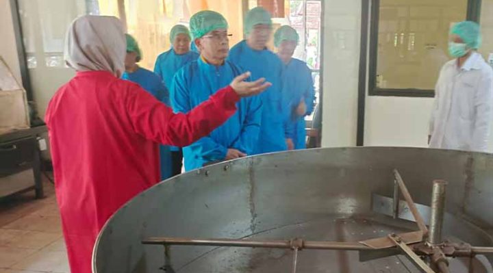 Dipabrik itu dengan menggunakan pakaian khusus didalam pabrik Pj Bupati beserta penjabat lainnya kemudian penanggungjawab pengolahan Dwi Pujiastuti menjelaskan setiap tahap pengolahan buah coklat dan kopi menggunakan mesin hingga pengemasan produk yang dijual.