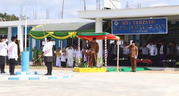 Sinarkalteng.com, PURUK CAHU – Pj Bupati Murung Raya (Mura), Hermon memimpin upacara Peringatan Hari Santri Nasional Tingkat Kabupaten Murung Raya di Halaman MTs Terpadu Karya Pembangunan, Selasa, (22/10/2024).