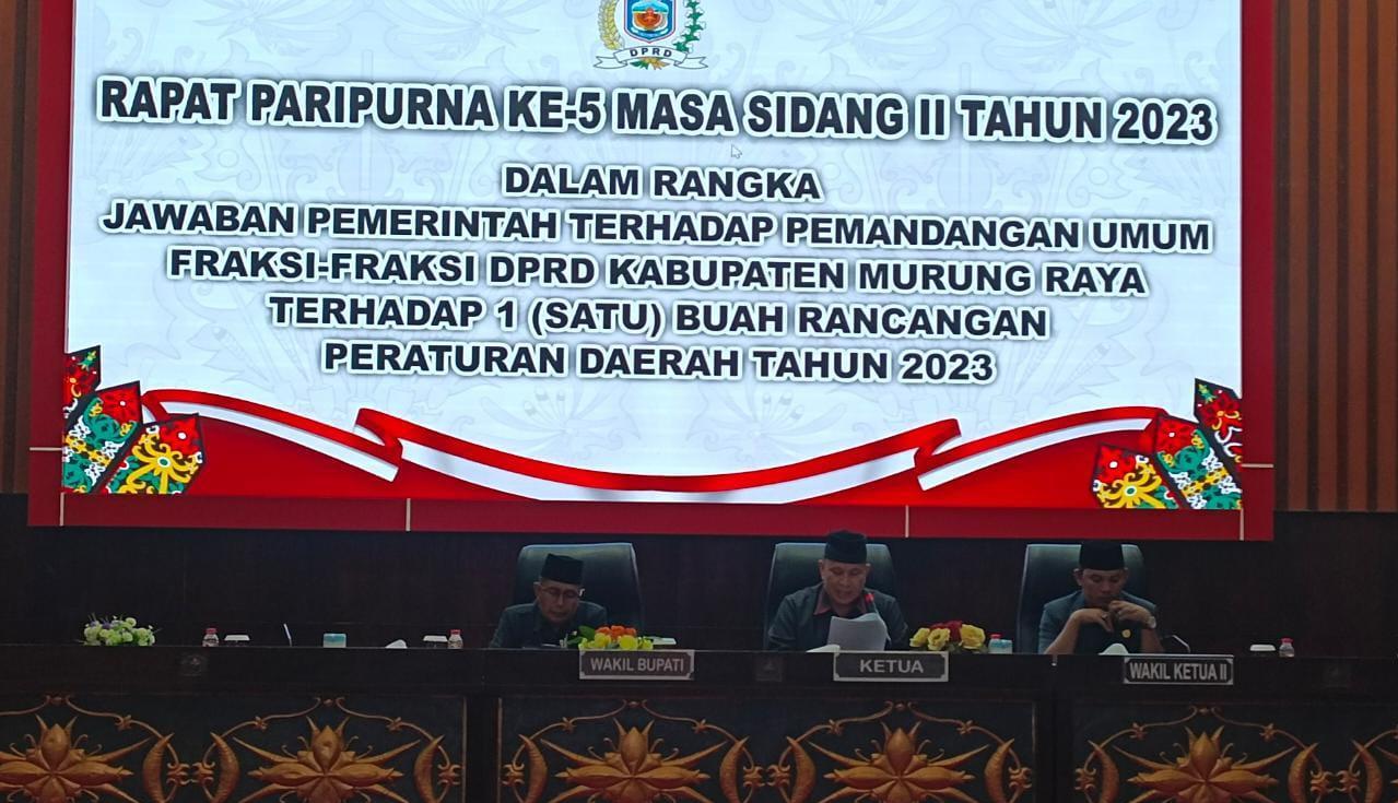 PURUK CAHU – Setelah sebelumnya sempat tertunda, DPRD Kabupaten Murung Raya (Mura) menggelar kembali rapat Paripurna ke – 5 masa sidang II dalam rangka mendengarkan jawaban dan penjelasan Pemerintah Kabupaten Murung Raya terhadap pemandangan umum yang telah disampaikan fraksi-fraksi DPRD terkait Rancangan Peraturan Daerah (Raperda) tentang perubahan kedua atas peraturan daerah nomor 9 tahun 2016 adalah tentang pembentukan dan susunan perangkat daerah Kabupaten Murung Raya.