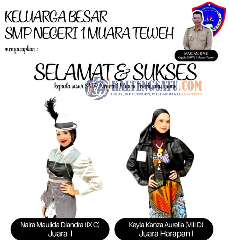 Kepala SMPN 1 Muara Teweh, Maslan, S.Pd.I, mengungkapkan rasa bangganya atas pencapaian gemilang ini. “Prestasi ini membuktikan bahwa siswa-siswi SMPN 1 Muara Teweh mampu berprestasi di berbagai bidang, tidak hanya akademik, tetapi juga kreativitas dan kepercayaan diri. Kami sangat bangga dan berharap ini menjadi motivasi bagi siswa lainnya untuk terus mengembangkan potensi diri,” ujarnya pada Sabtu (4 Oktober 2025).