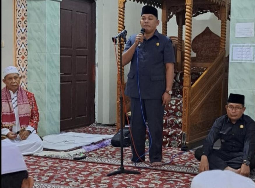 PURUK CAHU – Wakil Ketua II DPRD Mura, Rahmanto Muhidin bersama Anggota DPRD Mura, Heriyus melepas keberangkatan salah satu pemenang Seleksi Tilawatil Qur’an (STQ) ke XI tingkat Kabupaten Murung Raya (Mura) pada Juni 2023 lalu, untuk melaksanakan ibadah umroh bersama dengan para jemaah umroh lainnya di Mesjid At-Taqwa Kota Puruk Cahu, (7/8/2023).